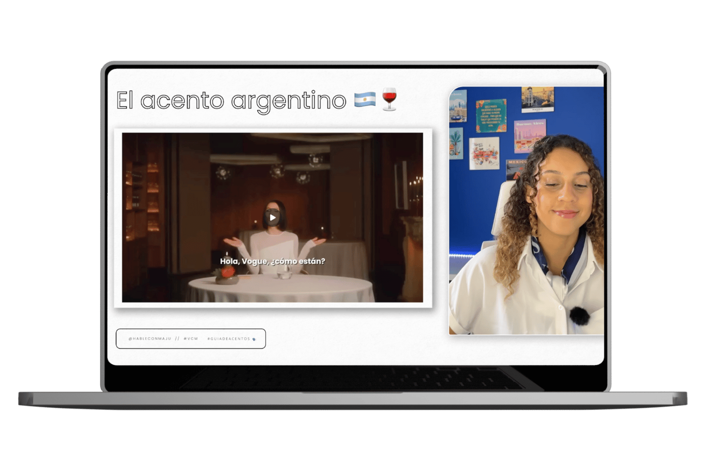 No Guía de Acentos, você recebe 4 videoaulas exclusivas de + de 40 minutos cada, onde eu te levo para dentro de cada sotaque.
