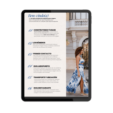 Seu material principal: lindo e prático. Mais de 50 páginas com frases práticas, organizadas por situações reais de viagem. Acesse facilmente pelo celular, tablet ou computador. Inclusive, você pode fazer o download em formato PDF e me levar com você pra todos os seus destinos!