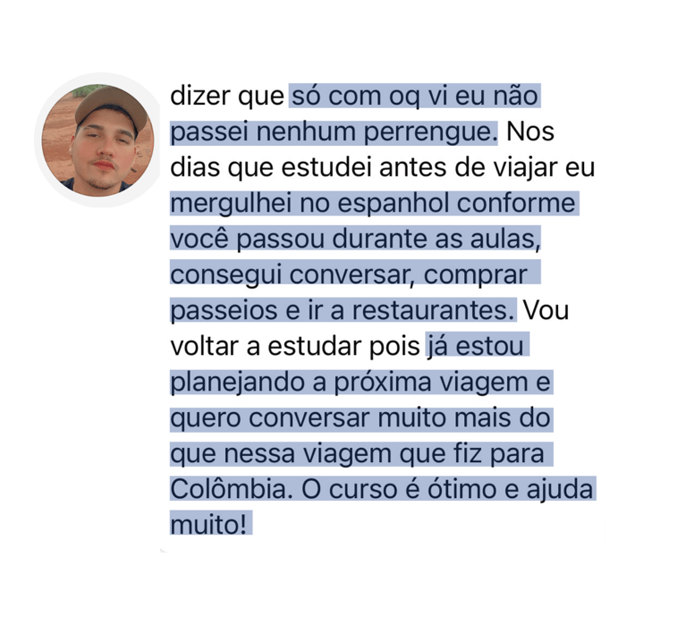 Isso não é sonho, é totalmente possível. Você não precisa de anos estudando, só precisa do espanhol CERTO, o da vida real. O ideal é que você tenha uma base fonética (consiga entender o alfabeto, os sons, onde o português e espanhol são parecidos e onde eles são diferentes), tenha um vocabulário específico para contextos de viagem (no aeroporto, no hotel, em lojas, em passeios, no restaurante…), a gramática específica para usar todo esse vocabulário (formas de tratamento, verbos, tempos verbais…) e a menta aberta para mergulhar de cabeça no idioma — porque ele também faz parte da cultura de um país. E o VCM te dá tudo isso!
